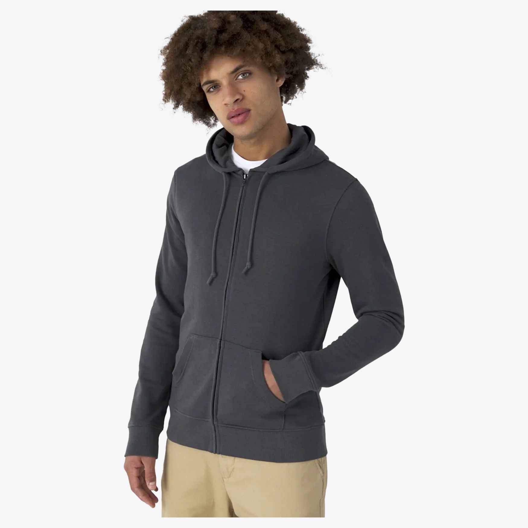 Zipped hooded sweatshirt with a trendy design, made from organic or conversion materials. Its composition of ring-spun combed cotton and recycled polyester offers an ultra-soft touch and optimal comfort. The side seams ensure a perfectly fitted cut, while the chevron stripe adds a stylish touch. The covered metallic zipper and double-lined hood with drawstrings complete this modern and comfortable model.
