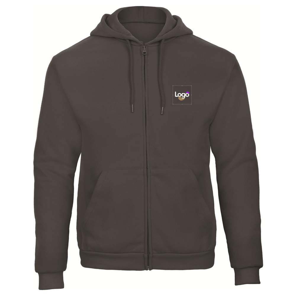 Zip-up hoodie. Elasticated ribbing at the hem and cuffs. Double stitching at the sleeve heads. Kangaroo pocket. Hood lined with drawcord. Set-in sleeves. Side seams. 50%cotton/50%cotton. This sweatshirt offers an excellent surface for customization, whether by embroidery or adding your logo.