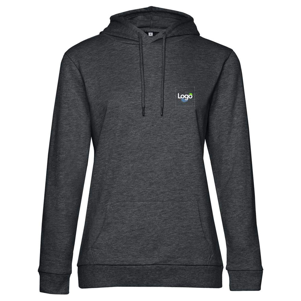 Classic and essential women's hooded sweatshirt, streamlined and minimalist on all occasions. Body cut and length comfortable designed for women for an ideal look. Side seams for a perfectly tailored fit to feminine silhouettes. Interior half-moon at the back in Single Jersey for easy customization. This sweatshirt is perfect for embroidery customization and adding your logo or design.