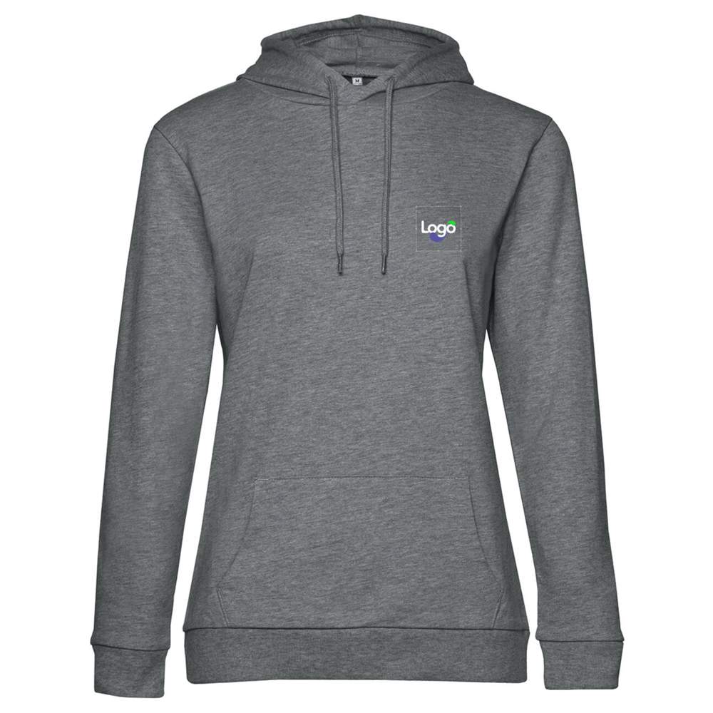 Classic and essential women's hooded sweatshirt, streamlined and minimalist on all occasions. Body cut and length comfortable designed for women for an ideal look. Side seams for a perfectly tailored fit to feminine silhouettes. Interior half-moon at the back in Single Jersey for easy customization. This sweatshirt is perfect for embroidery customization and adding your logo or design.
