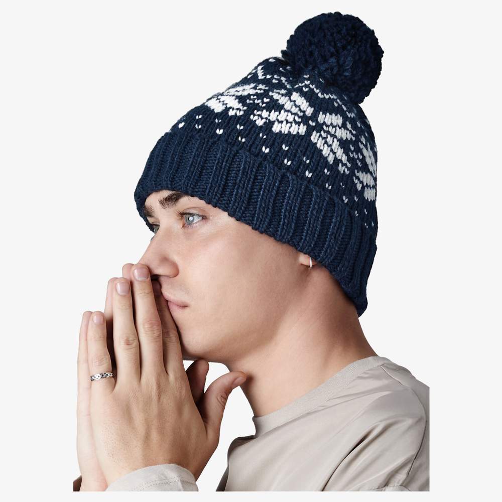 This acrylic beanie provides comfort and warmth. Its classic design, adorned with jacquard patterns, makes it a versatile accessory for cold seasons. The reversible design allows for optimal decoration. It is designed in a one-size-fits-most to fit most head sizes. The detachable label ensures added comfort.