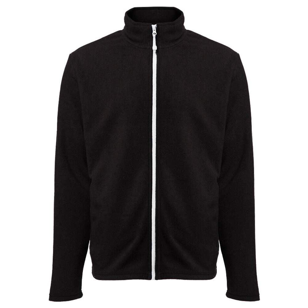 Zipped fleece jacket for men. Modern large zip fleece jacket. 2 side zip pockets. Main zip and pocket zips contrast. Composition: microfleece anti-pilling 100% polyester.