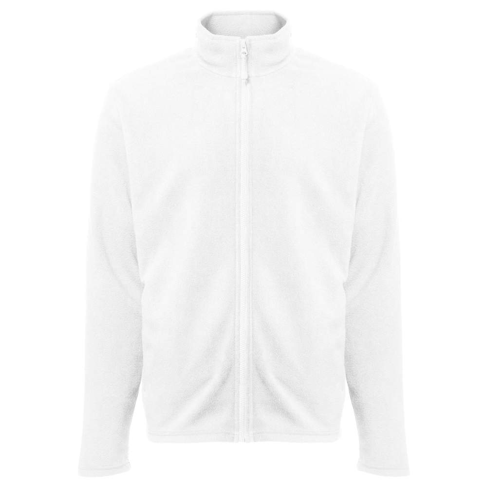 Zipped fleece jacket for men. Modern large zip fleece jacket. 2 side zip pockets. Main zip and pocket zips contrast. Composition: microfleece anti-pilling 100% polyester.