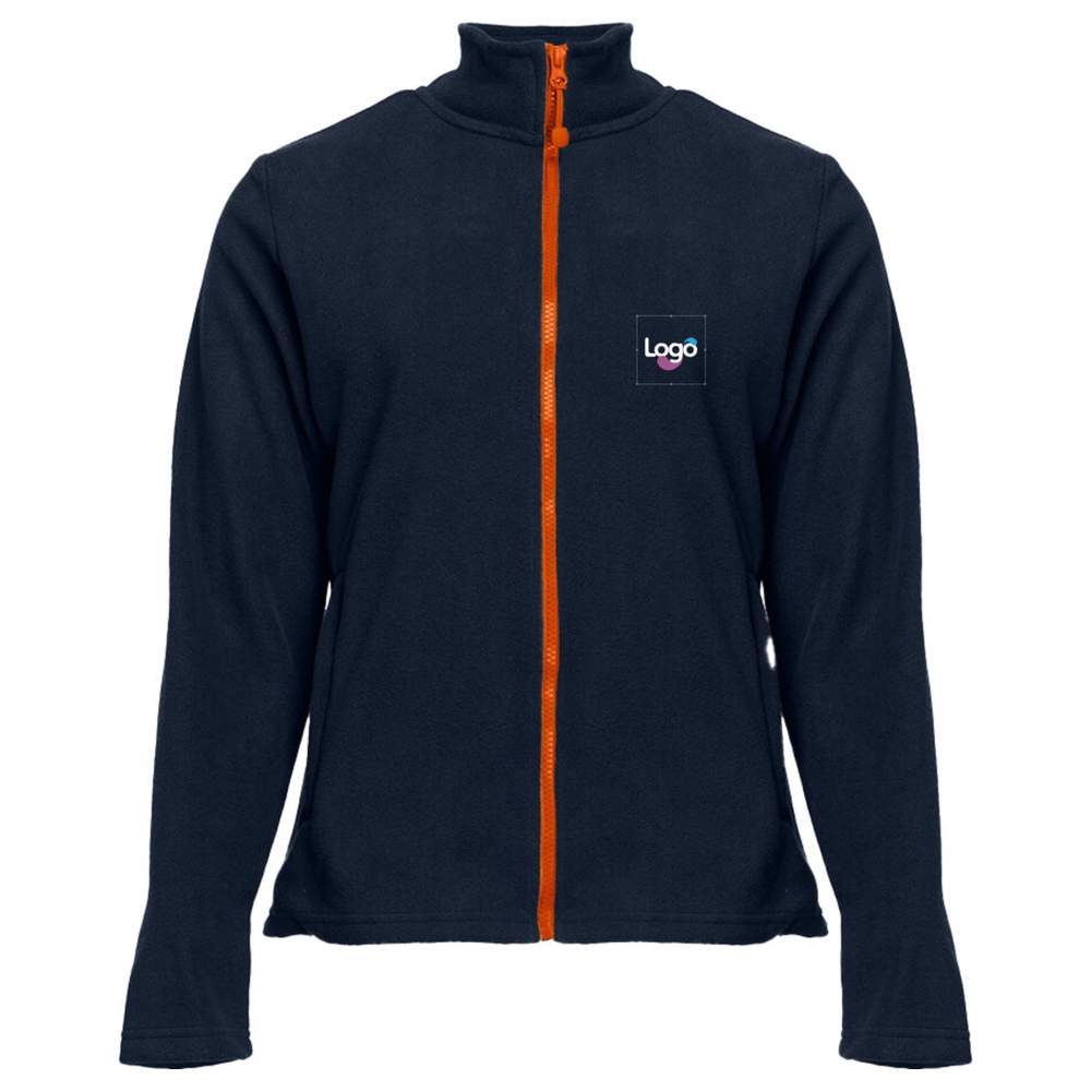 Zipped fleece women jacket, modern with a large zip. It has two zipped side pockets. The main zip and the pocket zips are contrasting. Composition: anti-pill microfleece 100% polyester.
