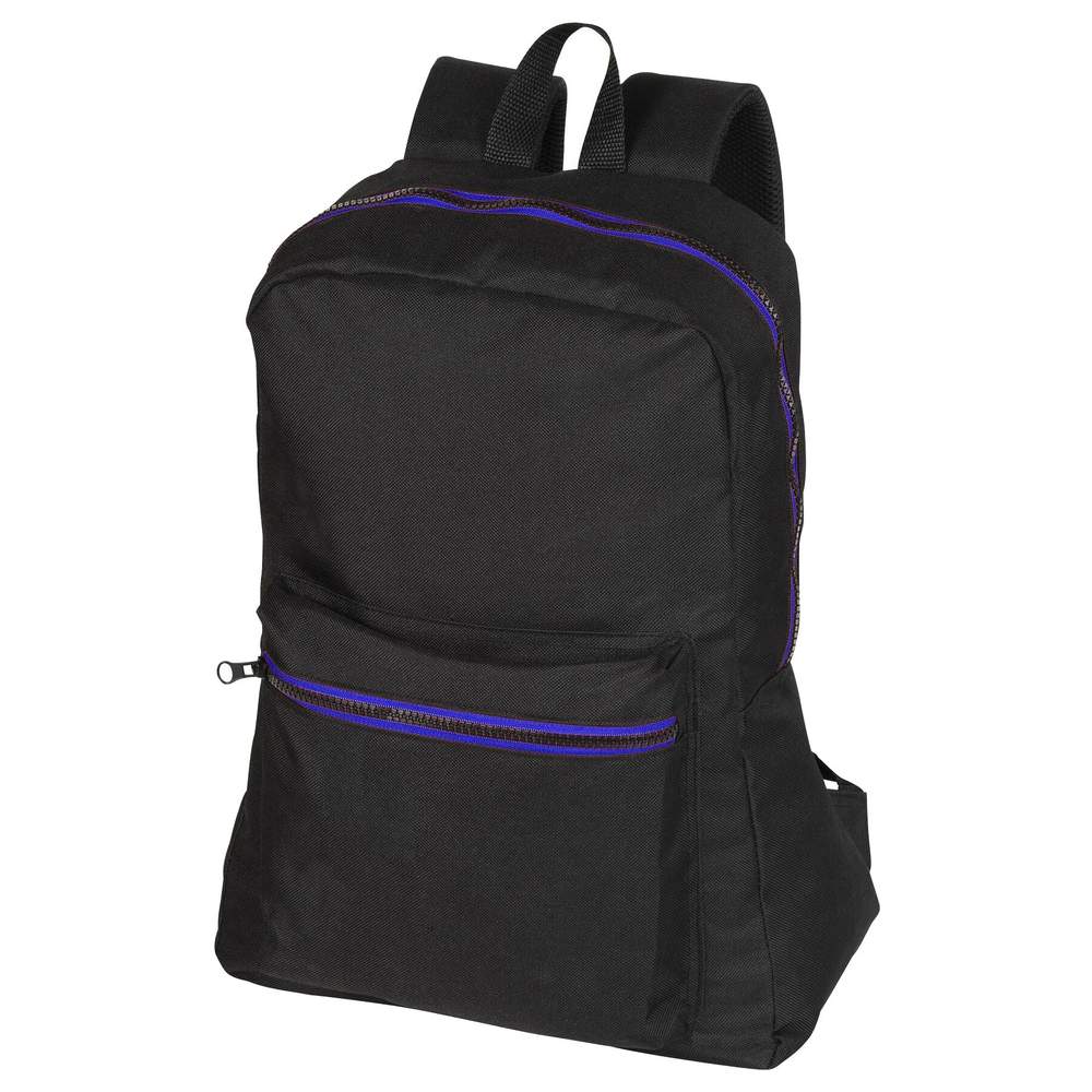 Traditional multi-functional backpack designed for daily use. It offers practical storage space thanks to its central pocket and front pocket, both equipped with contrasting zips for easy opening and closing. A carrying handle is present for easy hand carrying. The adjustable and padded straps ensure optimal comfort, even with heavier loads. This backpack is made from polyester with a PVC coating, offering good resistance to wear and protection against moisture.