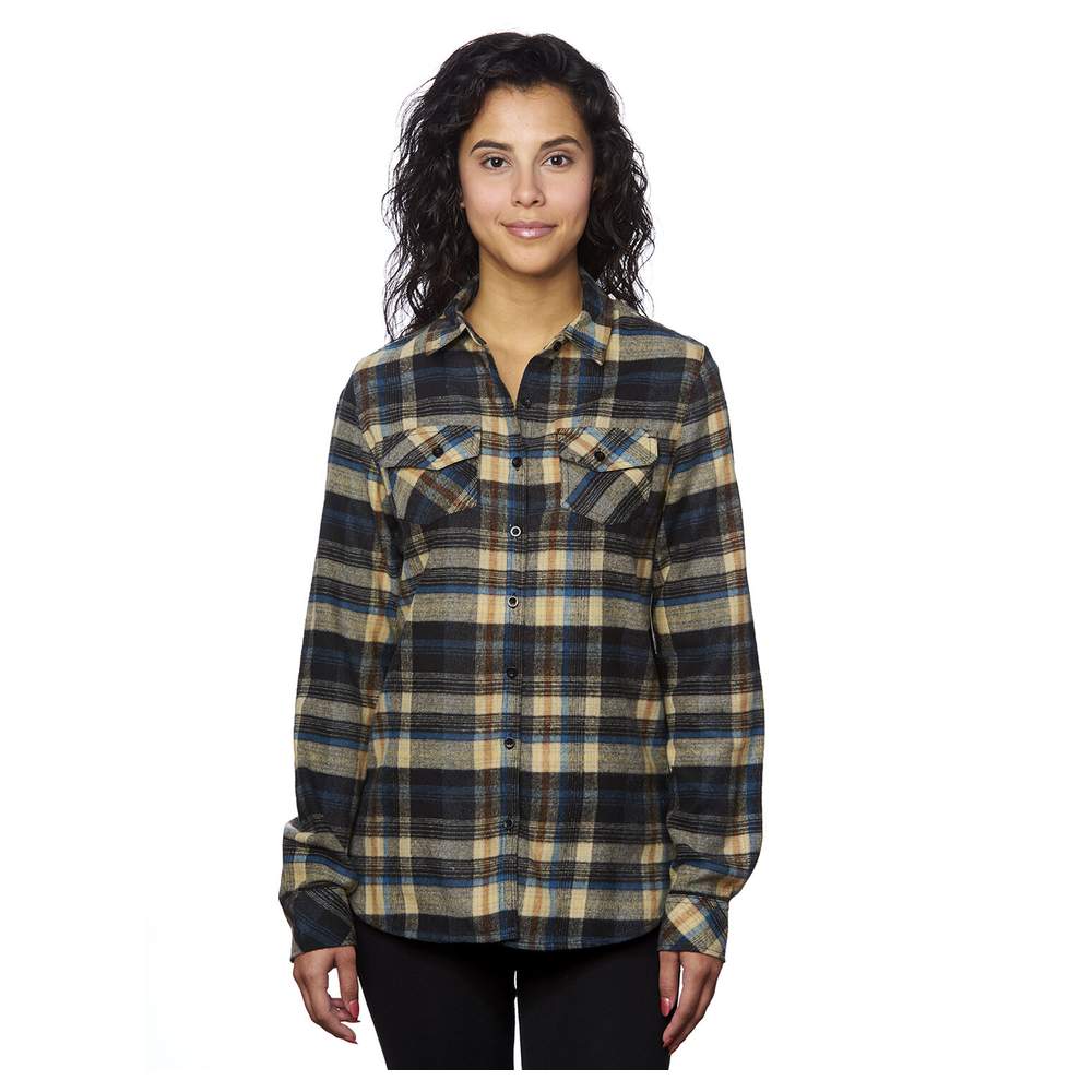 5210 - Women's woven plaid flannel shirt Cotton polyester 5210 - khaki_check