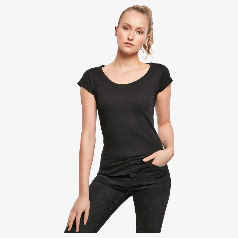BY035 - Ladies back cut tee Cotton simple T-shirt by035 - black