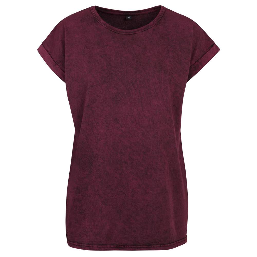 BY053 - Ladies acid washed extended shoulder tee by053 - berry_black