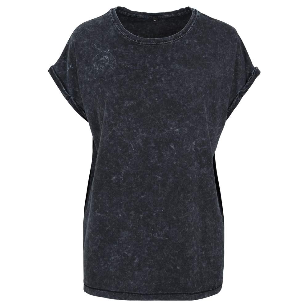 BY053 - Ladies acid washed extended shoulder tee by053 - black