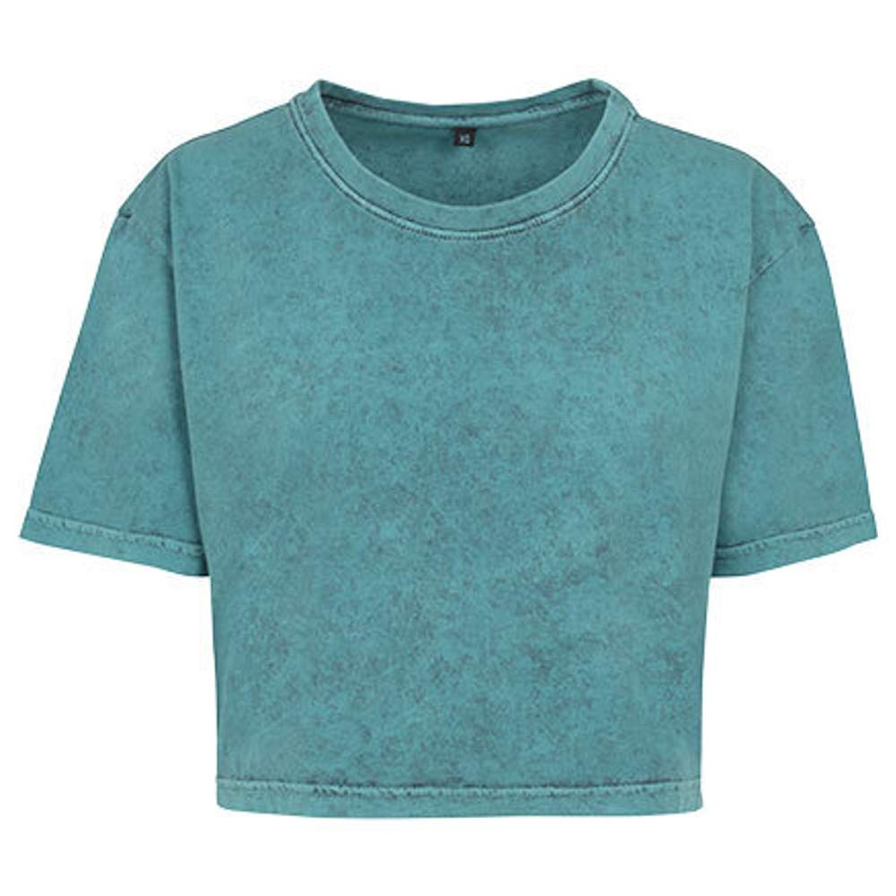 BY054 - Ladies acid washed cropped tee by054 - teal_black