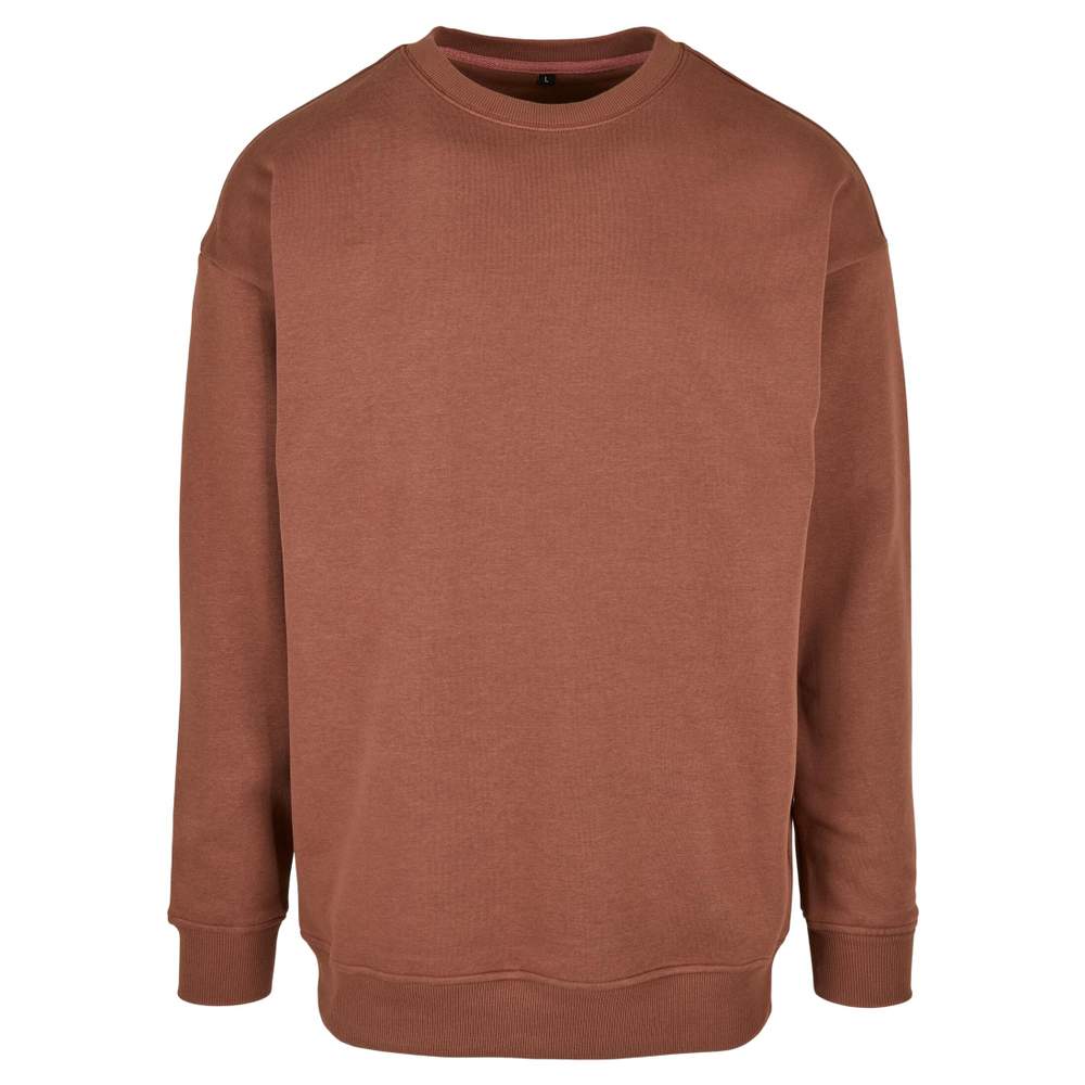 Sweatshirt with brandless size tag, extended shoulder, and clean band. Ribbed cuffs at the hem and wrists. Half-moon neckline, regular fit.