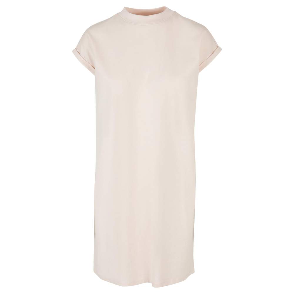 This dress combines the comfort of a t-shirt with the look of a dress. Made from soft cotton, it features wide shoulders for a trendy silhouette. Its mini stand-up collar and rolled-up sleeves add a touch of originality.