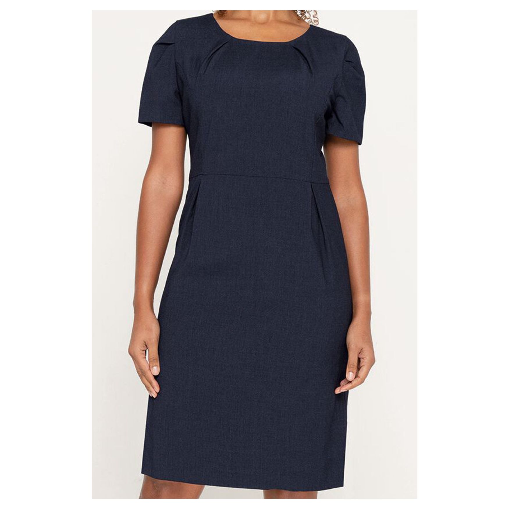 Primrose dress, fitted cut for a structured silhouette. Fully lined for added comfort and a neat hold. Pin detail on the chest, shoulders and hips to enhance the shape. Back slit for ease of movement. This dress is designed to meet the demands of a professional wardrobe while remaining elegant and comfortable.