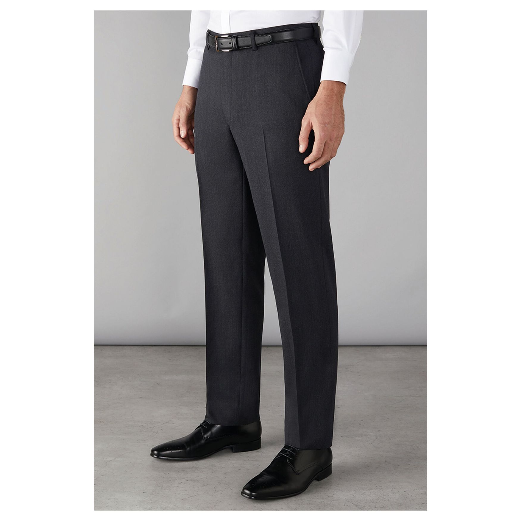 Men's one-pleat suit pants. This model offers a slim fit and includes two hip pockets as well as belt loops. It is designed to provide optimal comfort and a neat style.