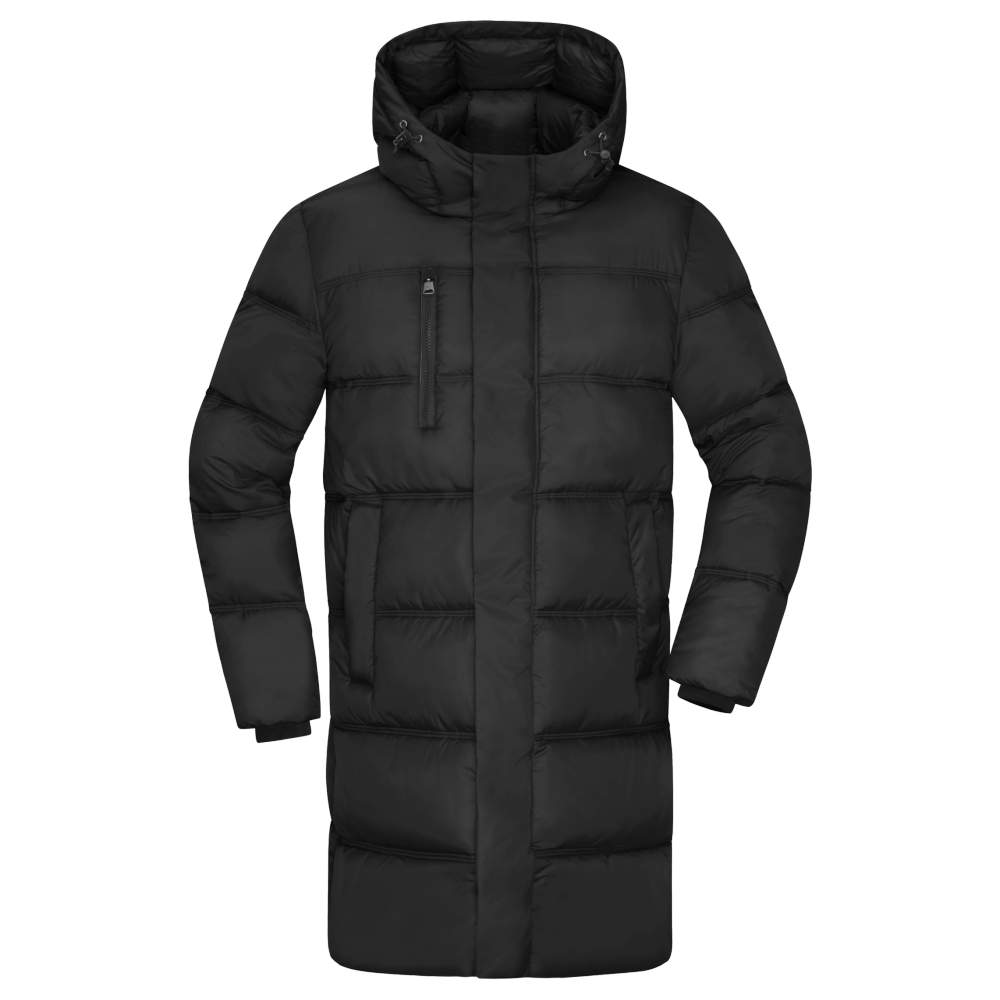 Men's quilted winter coat, made from recycled polyester for optimal comfort. Its Sugenro padding divided into large compartments ensures effective thermal insulation. It features a zippered chest pocket, two zippered side pockets, and a two-way zipper closure along the entire length. The two large internal pockets offer practical storage space. The adjustable hood and elastic internal cuffs improve fit and protection against the elements. This coat is also equipped with triple stitching for increased durability. It is possible to customize this coat with embroidery, allowing you to add your logo or visual for optimal brand identification.