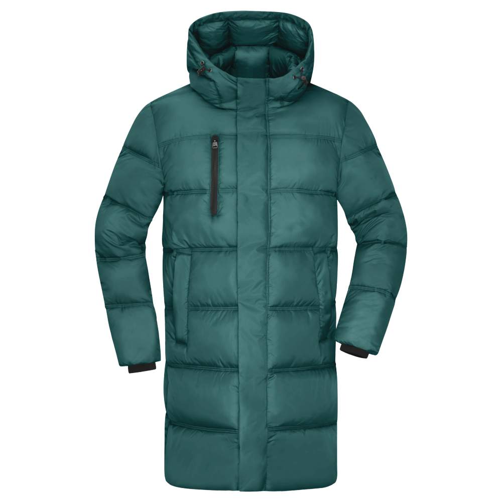 Men's quilted winter coat, made from recycled polyester for optimal comfort. Its Sugenro padding divided into large compartments ensures effective thermal insulation. It features a zippered chest pocket, two zippered side pockets, and a two-way zipper closure along the entire length. The two large internal pockets offer practical storage space. The adjustable hood and elastic internal cuffs improve fit and protection against the elements. This coat is also equipped with triple stitching for increased durability. It is possible to customize this coat with embroidery, allowing you to add your logo or visual for optimal brand identification.