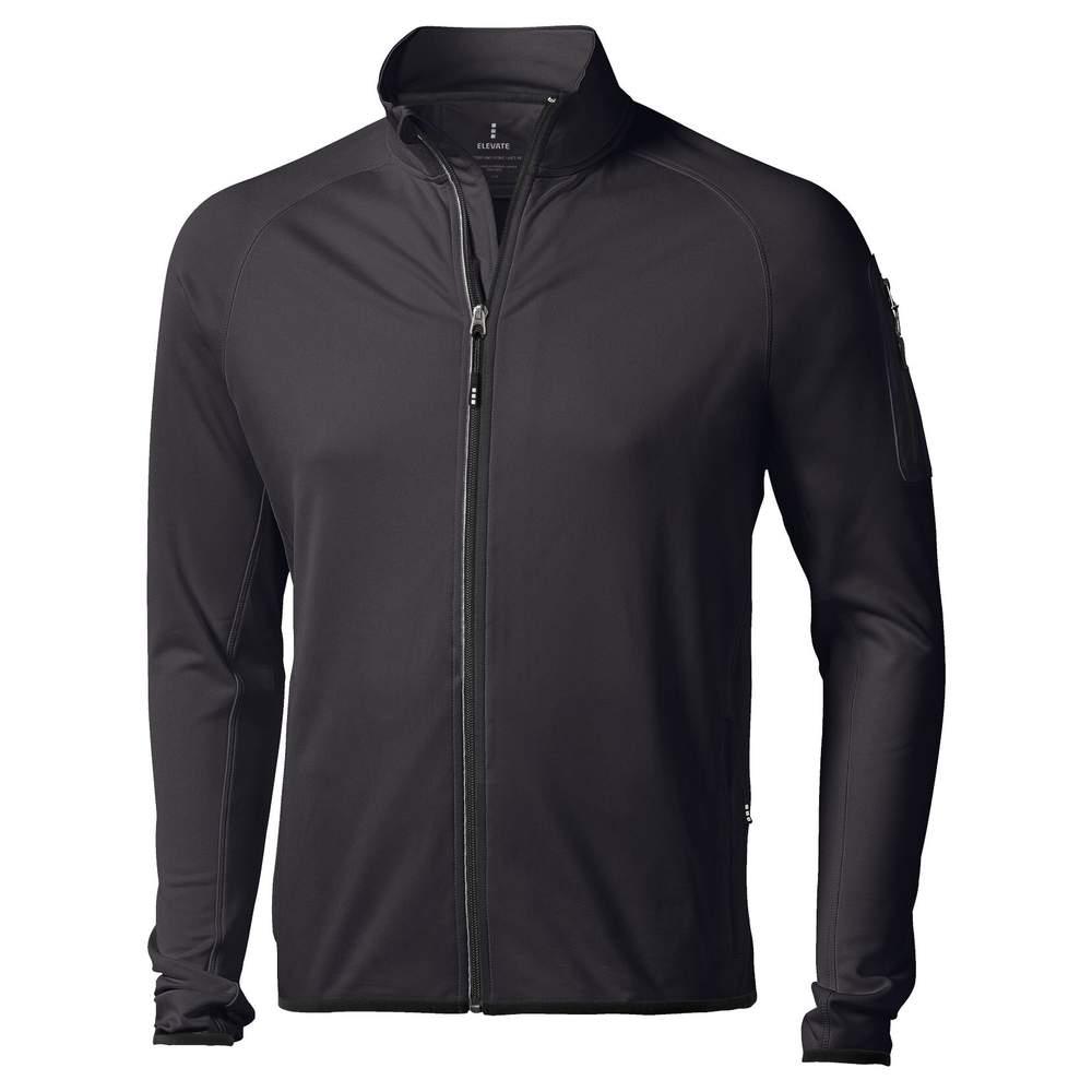 Full zip polar jacket offering comfort and freedom of movement thanks to its 4-way stretch fabric. It is equipped with thumb holes, reflective details, and an interior storm flap with chin protector. An interior media pocket, elastic drawstring, and front pockets with zippers ensure practical storage. A zippered sleeve pocket and a contrasting color half-moon add a touch of style. The satin clean finish band offers additional comfort. Made of jersey knit 91% polyester and 9% elastane with a breathable Cool Fit finish, the brushed interior provides a soft sensation. This jacket offers the possibility of customization by embroidery to display your logo or your visual identity. 4-way stretch fabric, thumb holes, reflective details, interior storm flap with chin protector, interior media pocket, elastic drawstring, sleeve pocket with zipper, contrasting color half-moon, satin clean finish band, jersey knit 91% polyester and 9% elastane, breathable Cool Fit finish, brushed interior