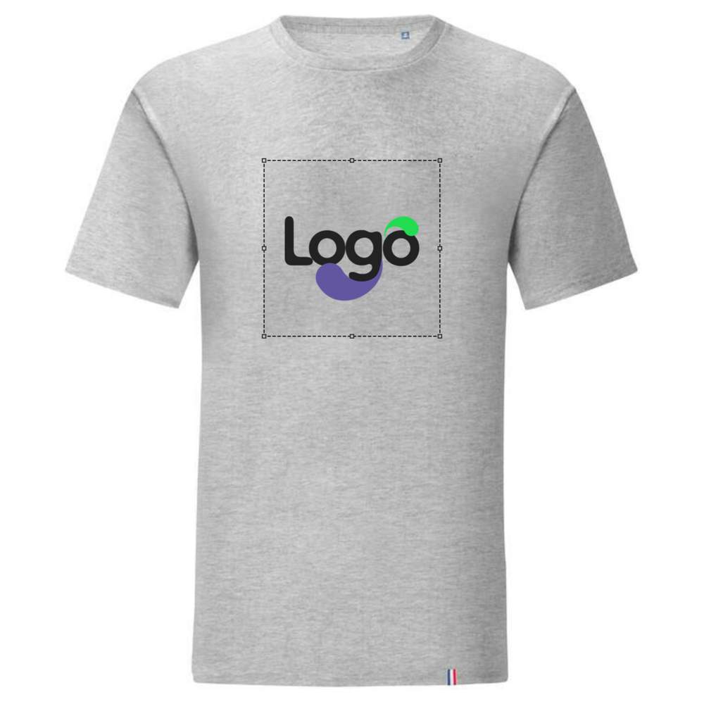 This organic cotton t-shirt offers optimal comfort and superior quality, made in France. Its fitted cut and round neck make it a versatile piece for a casual or more dressed-up look. The absence of a brand tag is compensated by a discreetly sized chip at the collar, and the composition is sewn into the side seam for added comfort. Double stitching at the hem and sleeves ensures great durability. A tricolor flag adorns the sleeve, symbolizing guaranteed French origin. Possibility to customize this t-shirt with your logo or visual.