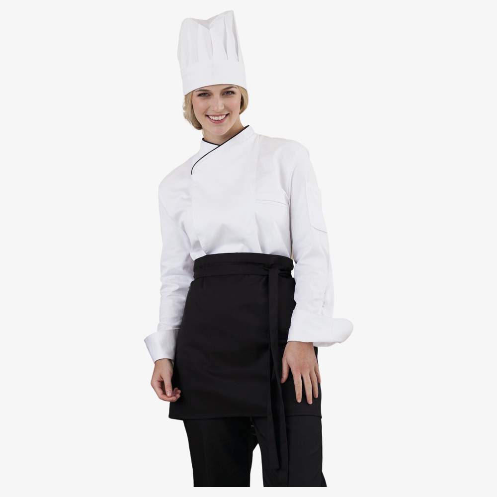 80 x 45 cm apron, made of polyester cotton for increased durability. This apron is compatible with industrial washing at 75°C. It is equipped with a retaining strap for optimal comfort. This apron is customizable, allowing the addition of your logo or visual in embroidery. It is perfect for professionals wishing to display their visual identity. Composition: 65% Polyester / 35% Cotton. Dimensions: 80 x 45 cm. Retaining strap. Customizable in embroidery