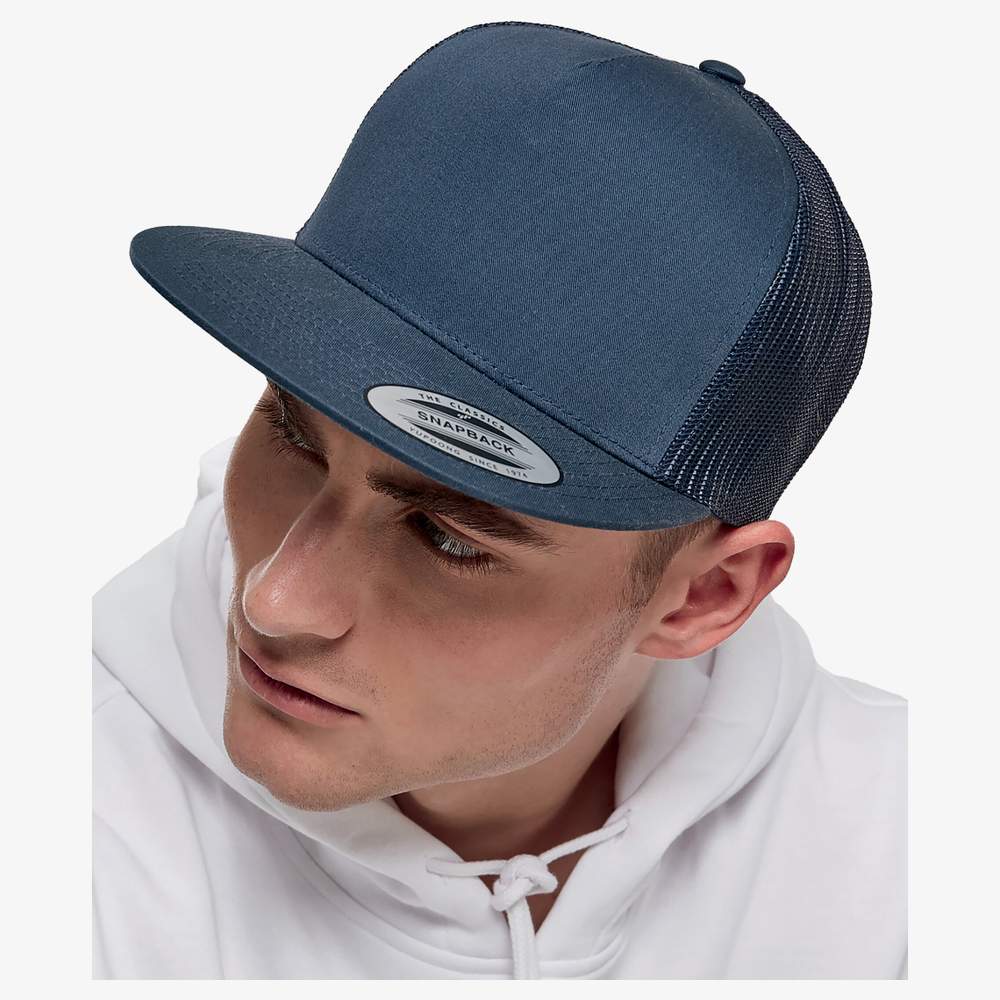 The Classic Trucker Cap is undoubtedly part of the basics of urban style. The Classic Trucker offers an authentic look with as much simplicity and sobriety: entirely plain, with a reinforced front part and a characteristic mesh back part. Entirely monochrome. Reinforced front part. Typical mesh back part. Composition: outer fabric 1: 60% cotton, 40% polyester, outer fabric 2: 100% polyester. Possibility to customize this cap with embroidery of your logo or design.