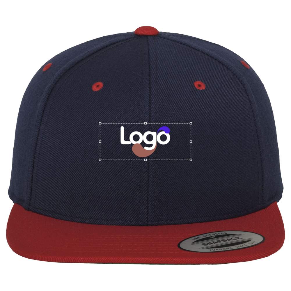 The classic shape of the Snapback Cap in a bicolor version to perfectly match each of your outfits. Adjustable snap closure for a perfect fit. Classic shape in bicolor version. First-quality wool blend. Contrasting eyelet and button. Durable bougran. Green underside of visor. Composition: 80% acrylic, 20% wool. Possibility to customize this cap with embroidery for a unique and professional result.