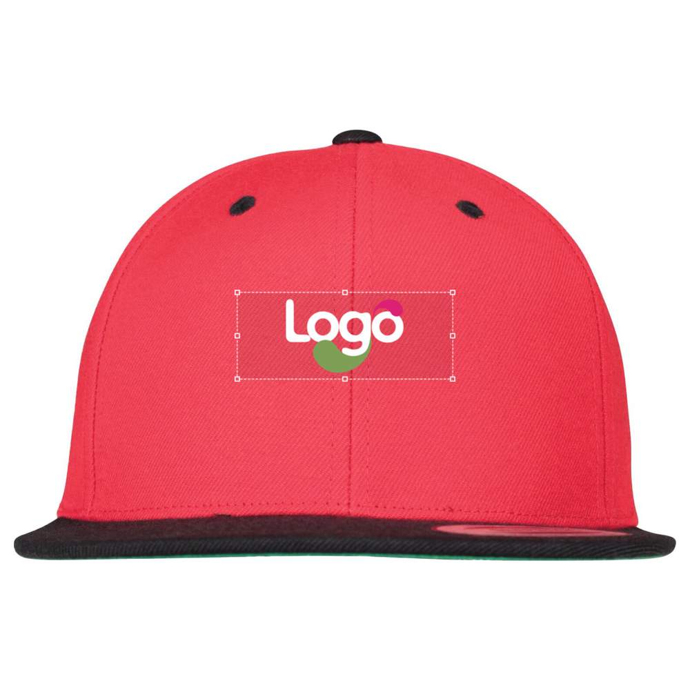 The classic shape of the Snapback Cap in a bicolor version to perfectly match each of your outfits. Adjustable snap closure for a perfect fit. Classic shape in bicolor version. First-quality wool blend. Contrasting eyelet and button. Durable bougran. Green underside of visor. Composition: 80% acrylic, 20% wool. Possibility to customize this cap with embroidery for a unique and professional result.