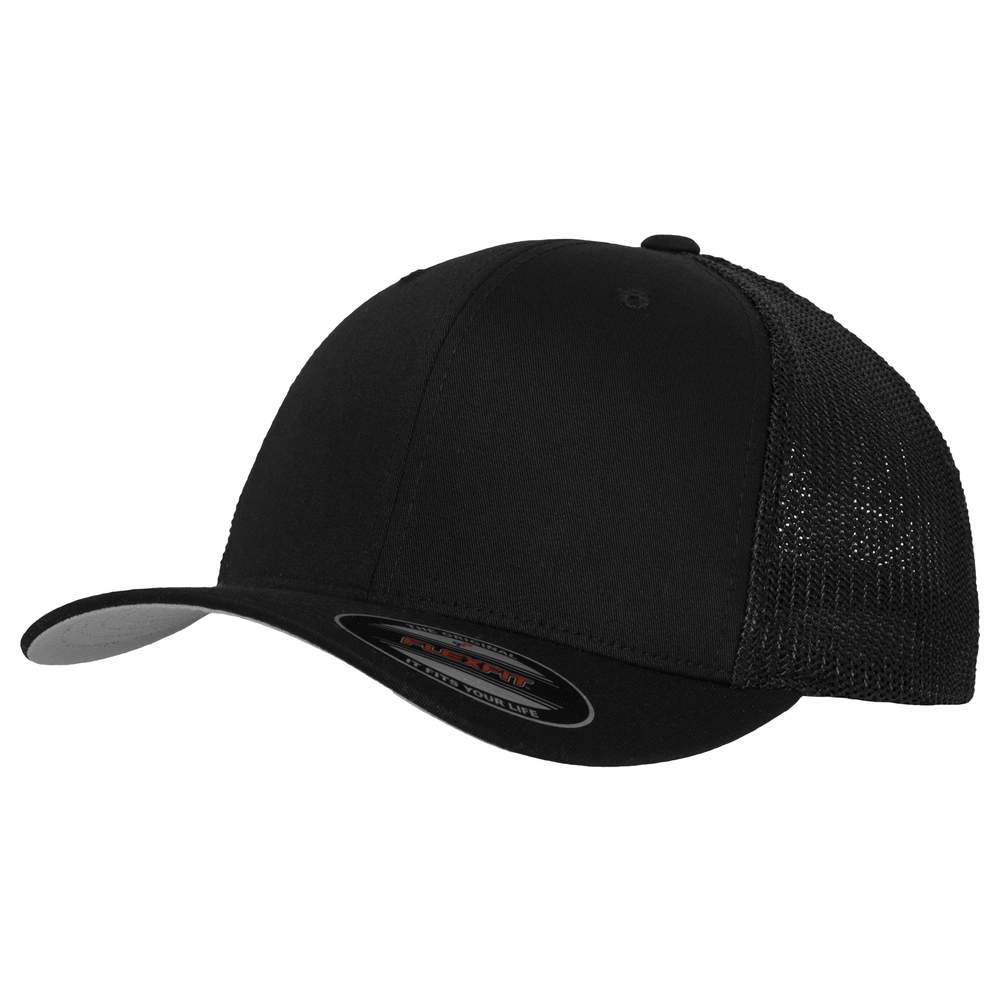 The Flexfit Mesh Trucker features a classic front, a curved brim, and a matching mesh back. Thanks to the patented Flexfit technology, the cap fits perfectly, and the integrated mesh and ventilation eyelets make it comfortable to wear. This cap is ideal for professionals looking to display their logo or brand identity. It offers an excellent surface for embroidery and allows for durable, high-quality customization. Composition: front panels and brim 60% cotton, 40% polyester, back mesh: 95% polyester, 5% elastane.