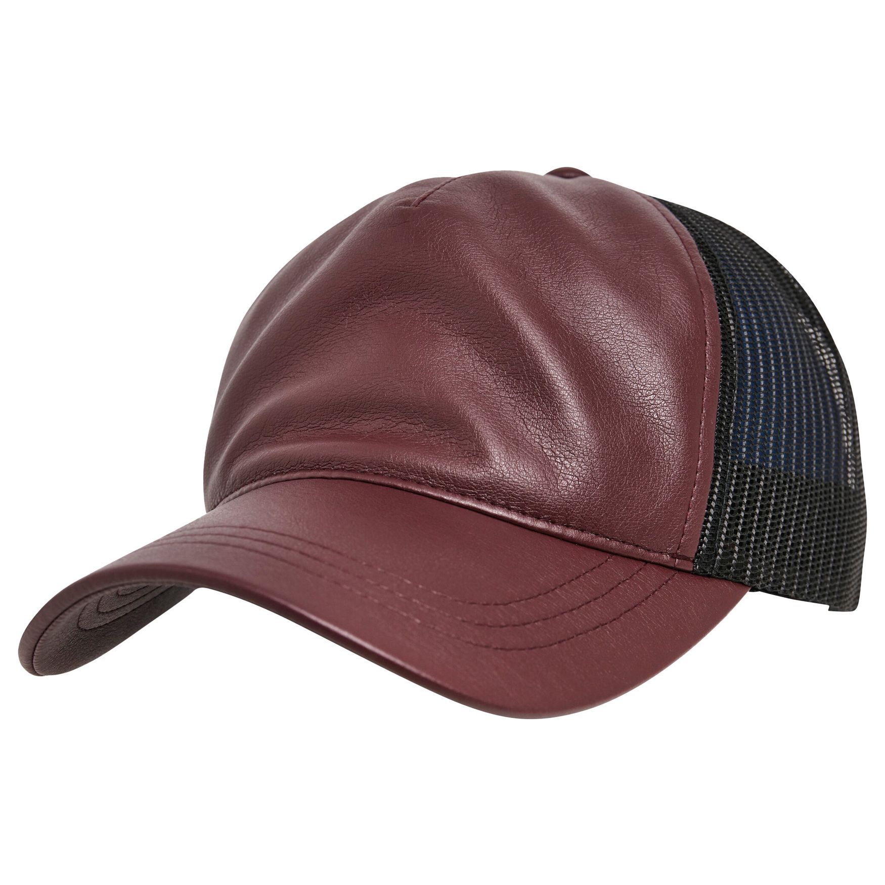 Leather trucker cap that enhances your wardrobe with originality. The front features a soft leather look and is highlighted by a pre-shaped visor with decorative stitching. Naturally, a perfect fit is guaranteed by an easy-to-use plastic closure at the back. This cap offers the possibility of customization with embroidery, ideal for displaying your logo or visual. The front features a soft leather look and is highlighted by a pre-shaped visor with decorative stitching. Composition : visor and crown 100% polyurethane, mesh 100% polyester.