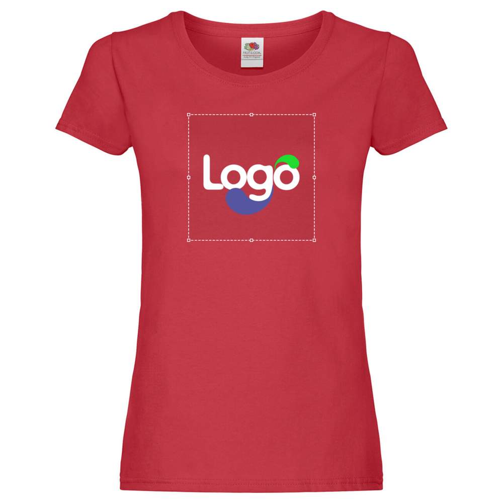 This Original t lady-fit from Fruit of the Loom is made of 100% cotton, offering optimal comfort and excellent print hold for customization. Its flattering women's fit and fine knit gauge make it an ideal choice for uniforms, promotional events or everyday wear. It features a ribbed crew neck, a neatband and side seams for better durability and perfect fit. This t-shirt is easily customizable with your logo, your visual or any other design of your choice.