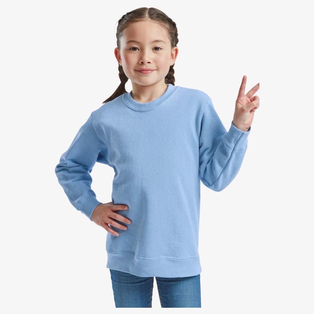 This Fruit of the Loom Classic children's sweatshirt offers optimal comfort thanks to its composition in 80% Belcoro cotton yarn and 20% polyester. It features ribbed cuffs in cotton/Lycra at the waist, neck, and wrists, ensuring an optimal fit. A jersey panel of the same color completes this classic and comfortable garment.