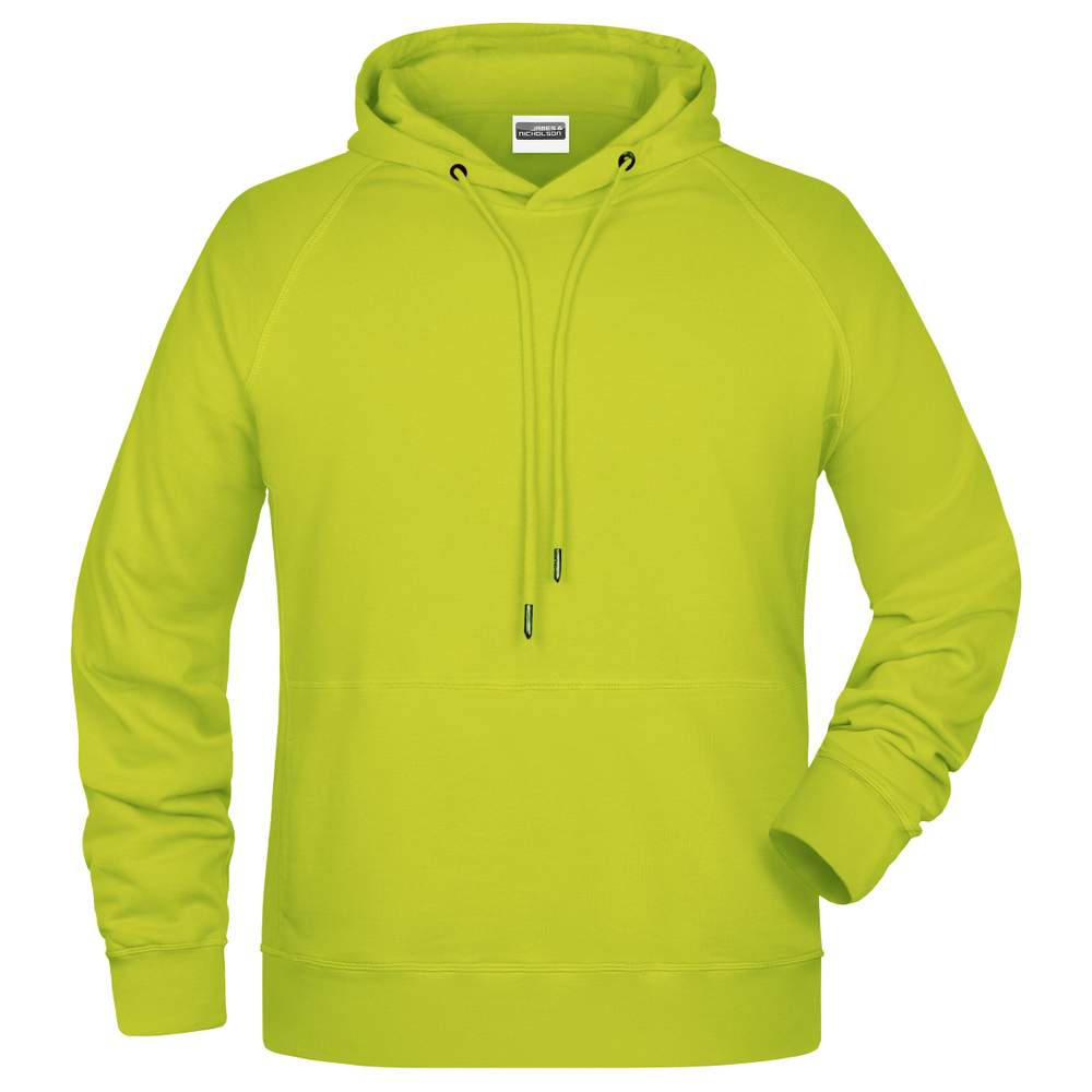 Hooded sweatshirt with raglan sleeves, made of anti-sweat fabric. The brushed interior offers increased comfort. This garment is composed of 85% organic ring-spun combed cotton, ensuring a soft and pleasant sensation on the skin. It features a double-layer hood with drawstring for personalized adjustment. The side seams at the front contribute to a flattering cut, while the kangaroo pocket offers practical space for storing small items. The elastane cuffs provide a secure and comfortable fit. The detachable label allows for easy customization.