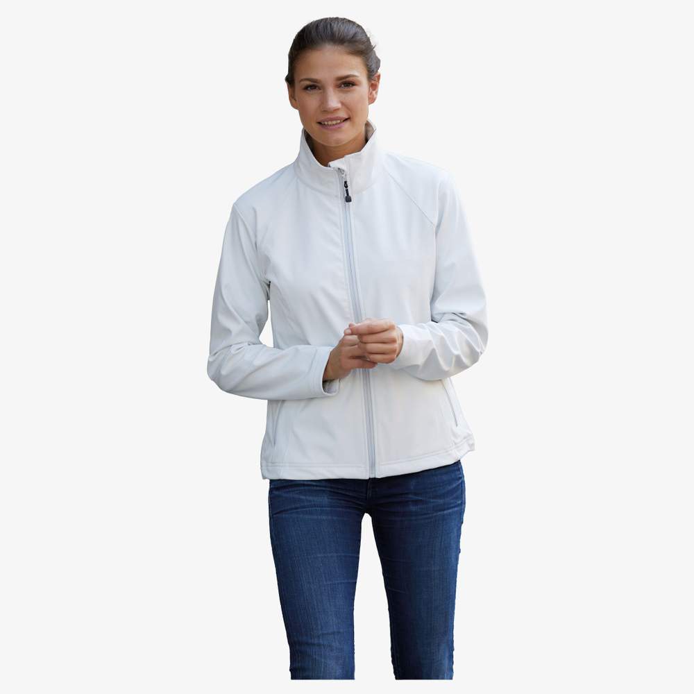 Trendy women's softshell jacket, offering windproof and waterproof protection thanks to its 3-layer construction with TPU membrane (water column of 2,000 mm). Seams are not taped. The stretch fabric ensures comfort and freedom of movement. This jacket features 2 zipped side pockets, 2 inner pockets, and an elastic drawstring with stopper at the hem. It is composed of 90% polyester and 10% elastane. Customization option with embroidery for effective brand communication.