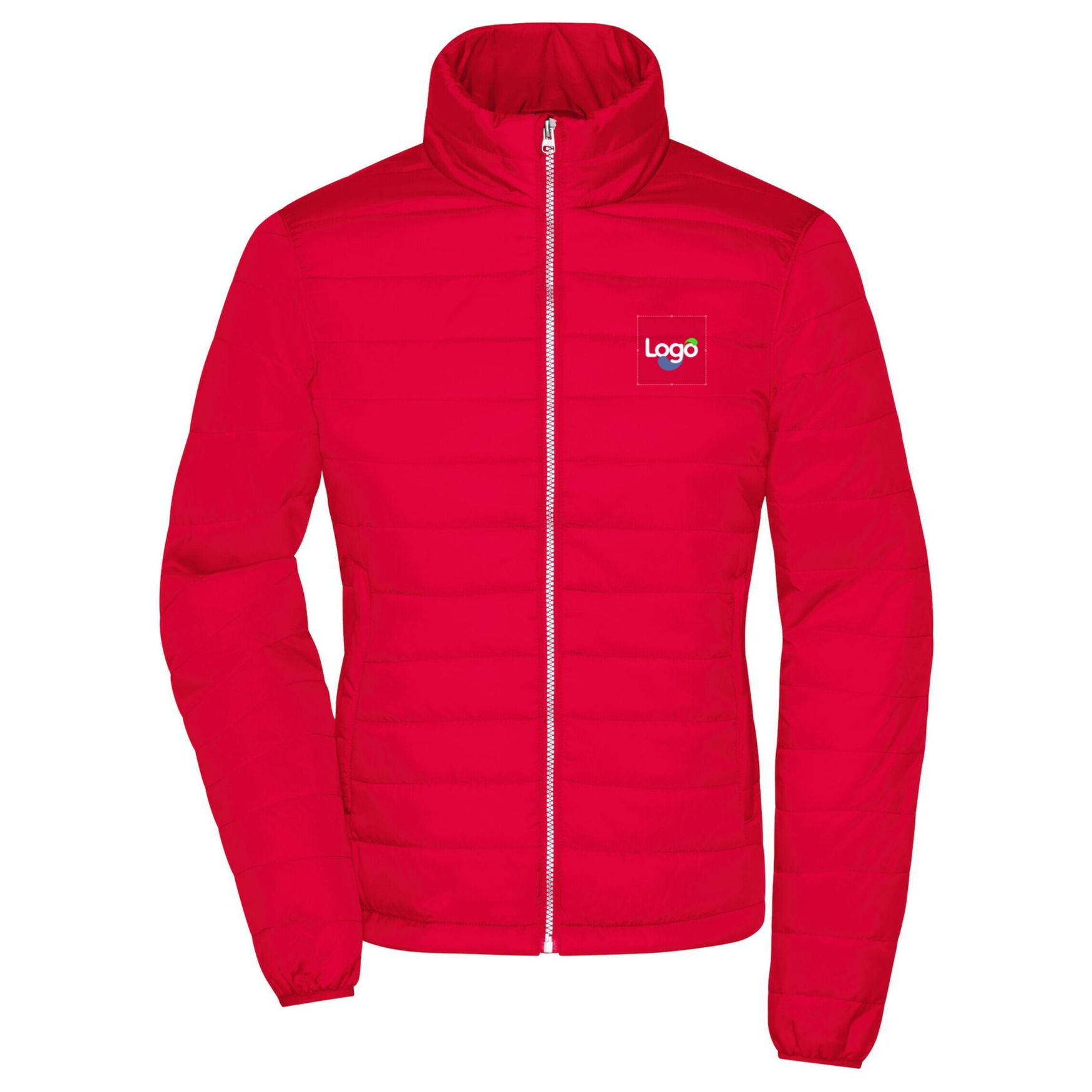 Women's padded jacket, fitted cut, lightweight and padded, windproof and waterproof. Features a high collar, zipped closure with chin guard, and two zipped side pockets and a zip for decoration on the back. Outer fabric composition: 100% polyamide; lining and padding: 100% polyester. This jacket offers the possibility of customization with embroidery for identifying your company or for a unique gift.