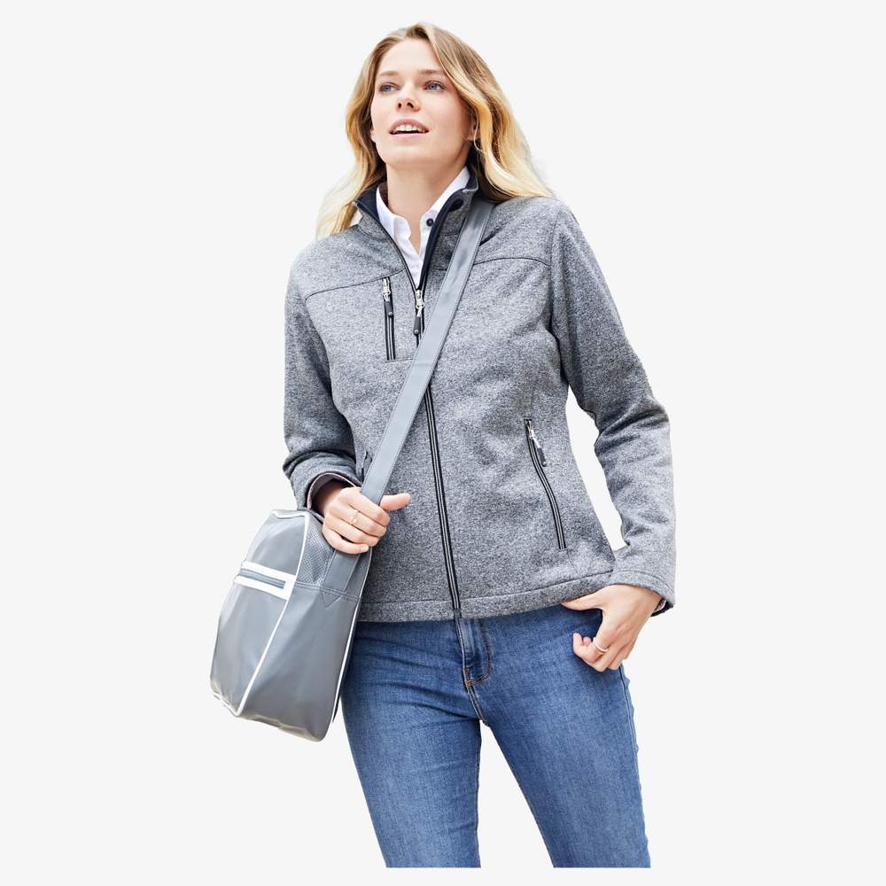 Women's jacket, slightly fitted, lightweight and soft. Two-layer softshell, pleasant with contrasting fleece interior. Features a continuously zipped front with a chin guard, a stand-up collar, and two side pockets and one zipped chest pocket. Composition: 100% polyester. This jacket offers the possibility of customization with embroidery for effective communication of your brand.
