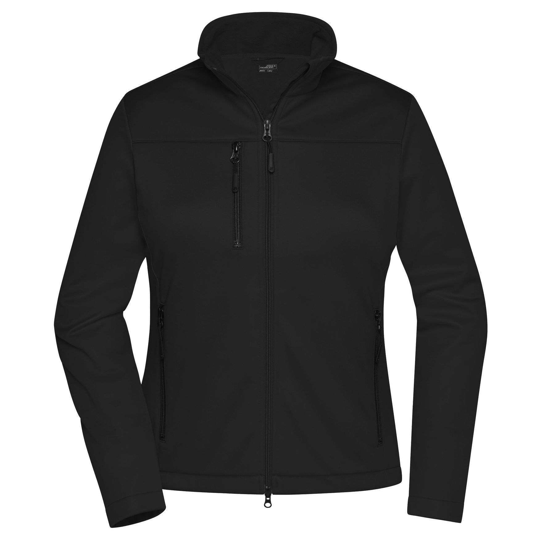 Classic women's softshell jacket, slightly fitted, with a sporty design, made of recycled polyester. Triple-layer functional material, pleasantly soft, with TPU membrane, windproof, water-repellent (5,000 mm), breathable and vapor-permeable. Seams are not sealed, the interior is in microfleece, and the lining is in mesh on the front. Features a high collar, two side pockets, and a zipped chest pocket as well as a full-length two-way zipper with chin guard. Elastic cord at the hem to adjust the width and decorative zipper on the front. Composition: 100% polyester. This jacket is customizable with embroidery to integrate your logo or your visual.