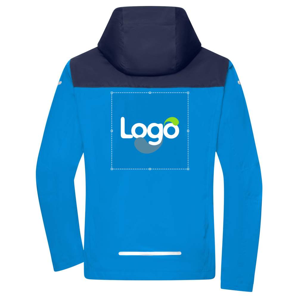 Lightweight and insulated softshell outdoor jacket. Functional recycled polyester fabric with TPU membrane, windproof and water-repellent (water column of 10,000 mm) with breathable and water vapor permeable properties. The seams and zipper are sealed. Light mesh lining. Double zipper with chin guard. It has two side pockets, one interior pocket, an adjustable hood, and a Velcro strap to adjust the width on the sleeves. Ergonomic cut, extended back section. Elegant and reflective details on the sleeves and back. Zipper for decoration on the back. Composition: 100% polyester. This jacket offers an ideal surface for adding your logo or visual with embroidery, allowing effective and durable customization. Windproof and waterproof. Breathable. Sealed seams. Adjustable hood. Practical pockets. Customization possible with embroidery