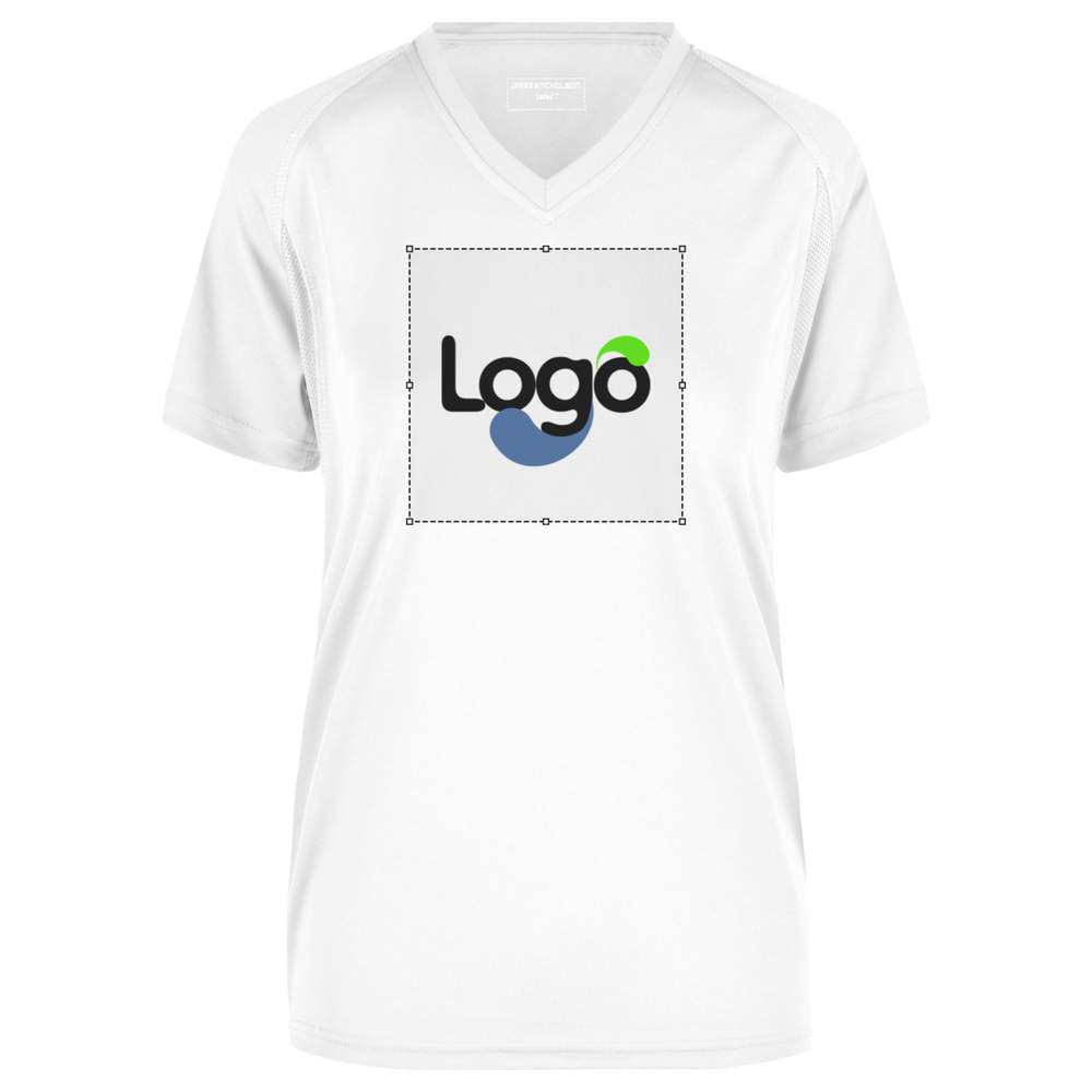 This breathable V-neck T-shirt for women is designed to provide optimal comfort during running. Made from light polyester, it ensures effective moisture-wicking and quick drying. Contrasting mesh panels improve ventilation, while the reflective print on the back ensures increased visibility in low light conditions. Its fitted cut offers optimal freedom of movement. This T-shirt is customizable, allowing the addition of your logo or visual.