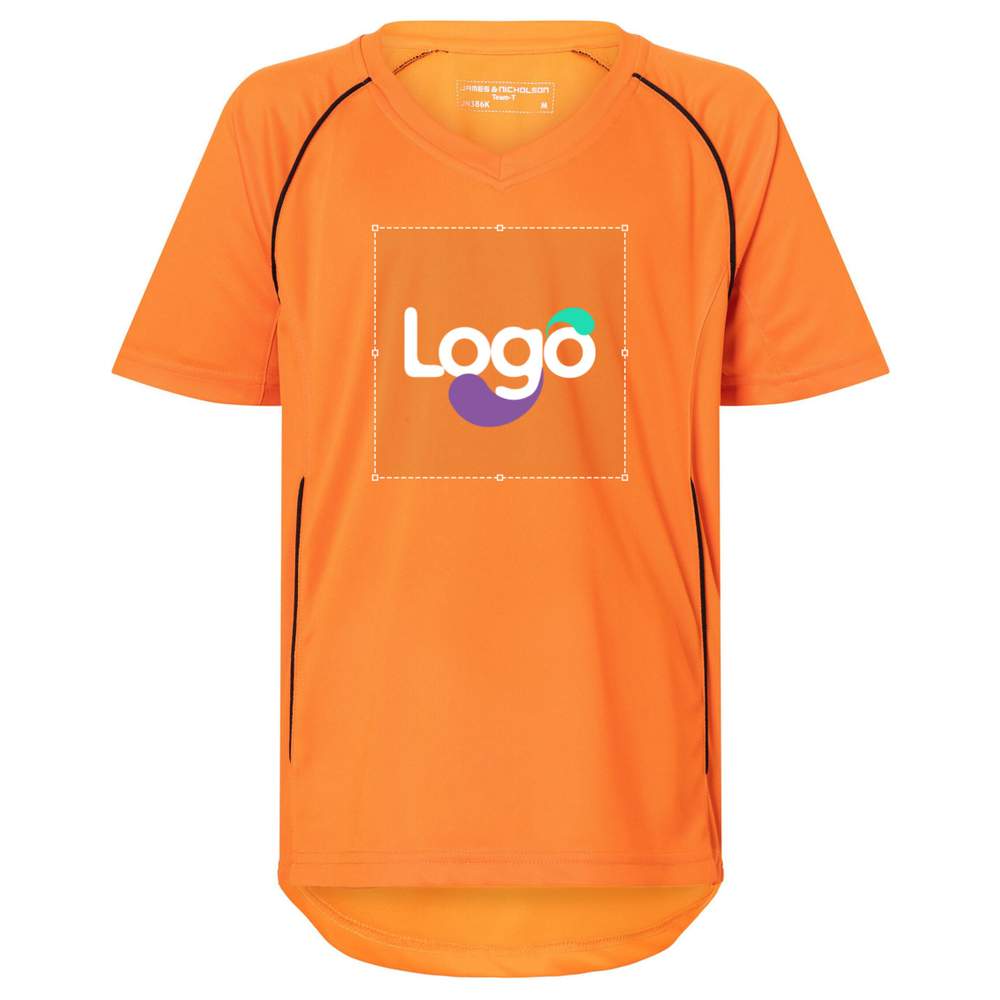 This junior polyester T-shirt offers quick drying and optimal comfort for sports activities and team events. Its lightweight and durable material ensures increased longevity. It is designed for easy maintenance, making it practical for regular use. Contrasting trims add a modern touch of style. This T-shirt is customizable, allowing you to incorporate your logo or design for a unique representation of your team or brand.