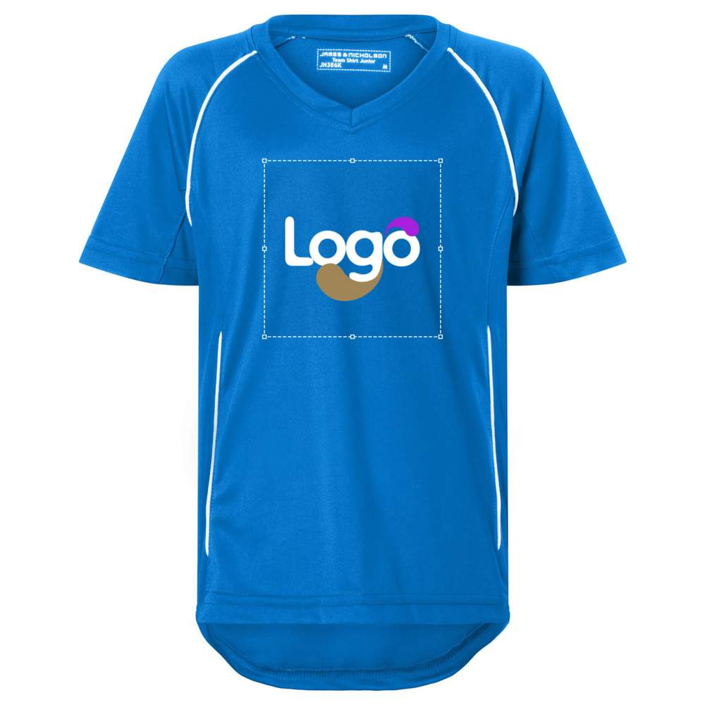This junior polyester T-shirt offers quick drying and optimal comfort for sports activities and team events. Its lightweight and durable material ensures increased longevity. It is designed for easy maintenance, making it practical for regular use. Contrasting trims add a modern touch of style. This T-shirt is customizable, allowing you to incorporate your logo or design for a unique representation of your team or brand.
