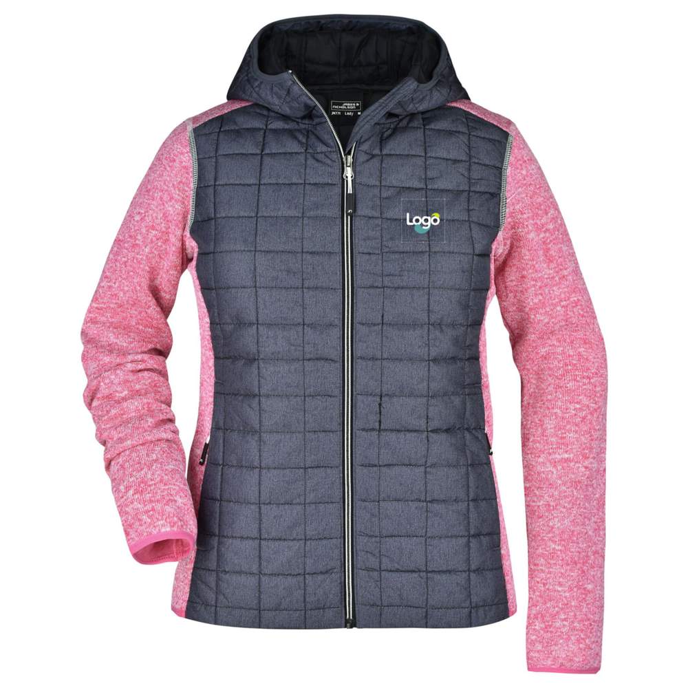 Woman jacket, fitted cut, soft, warm and easy-to-maintain fabric, with a tweed look. The front, back and hood are in quilted plaid pattern, the seams are flat and contrasting on the sleeves. The inner width of the hood is adjustable. Has a full-length covered zipper, two side pockets with zipper and two inner pockets. Composition: 100% polyester lining: 100% polyamide. This jacket offers the possibility of customization to add your logo or your visual.
