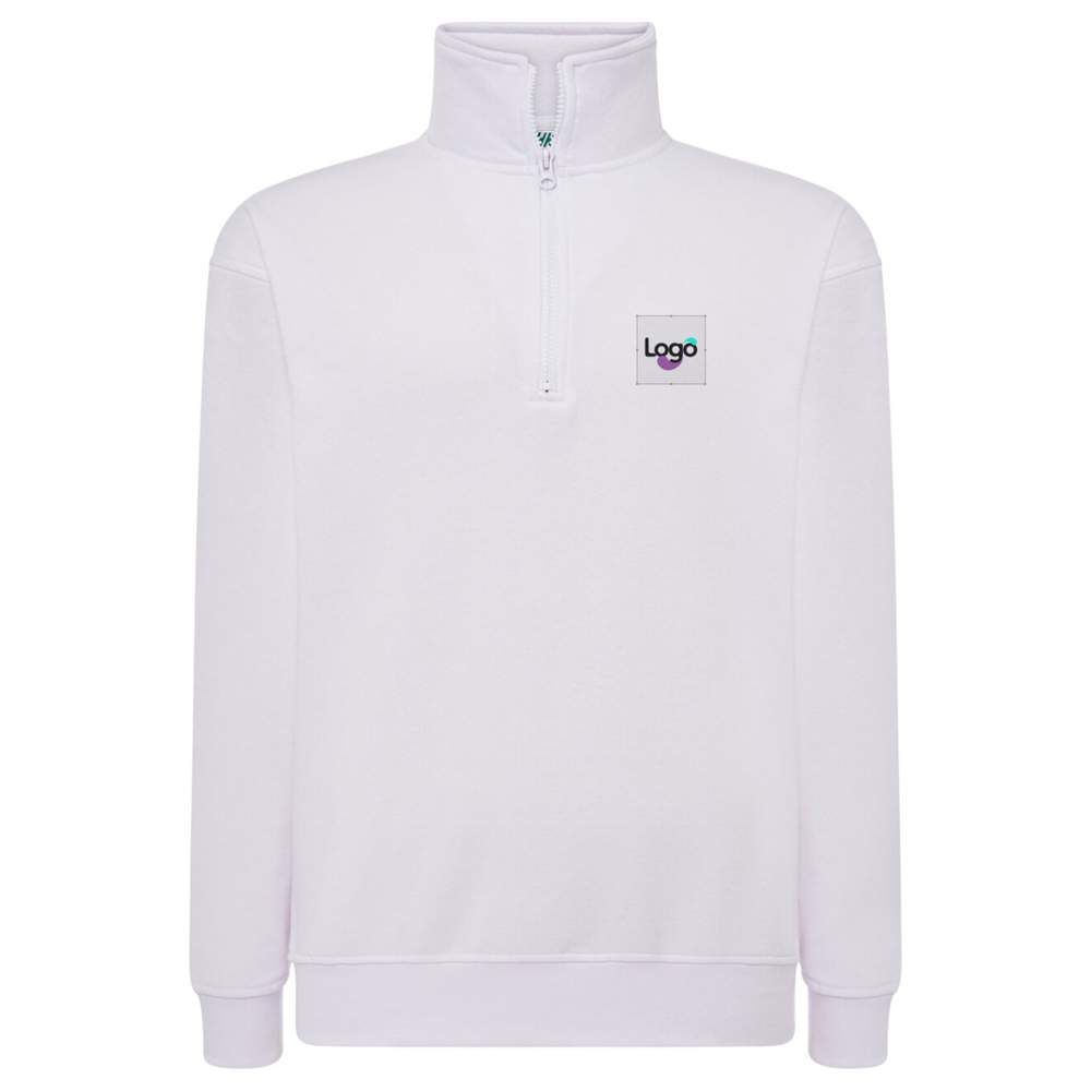 Half zip sweatshirt with 1x1 ribbed edge with lycra on the collar, cuffs and waist. Zipped standing collar and straight sleeves for optimal comfort. This sweatshirt offers an excellent base for customization, including embroidery, allowing you to add your logo, a visual or any other graphic element for effective communication. Composition: 65% polyester/35% cotton.