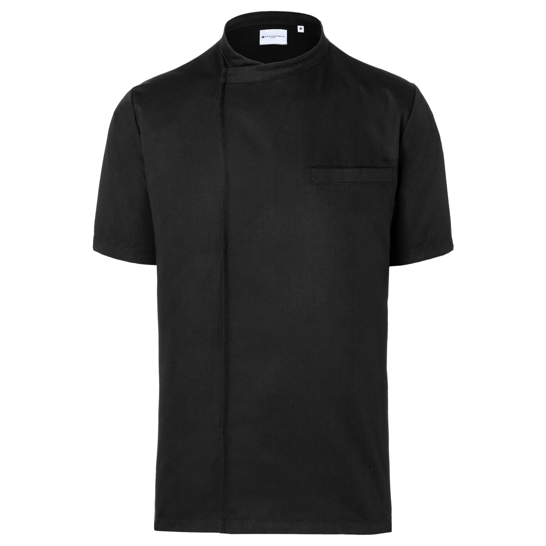 The Basic Chef Shirt is a short-sleeved kitchen jacket with a straight cut, designed for easy slip-on wear. A piped chest pocket is placed on the left side.