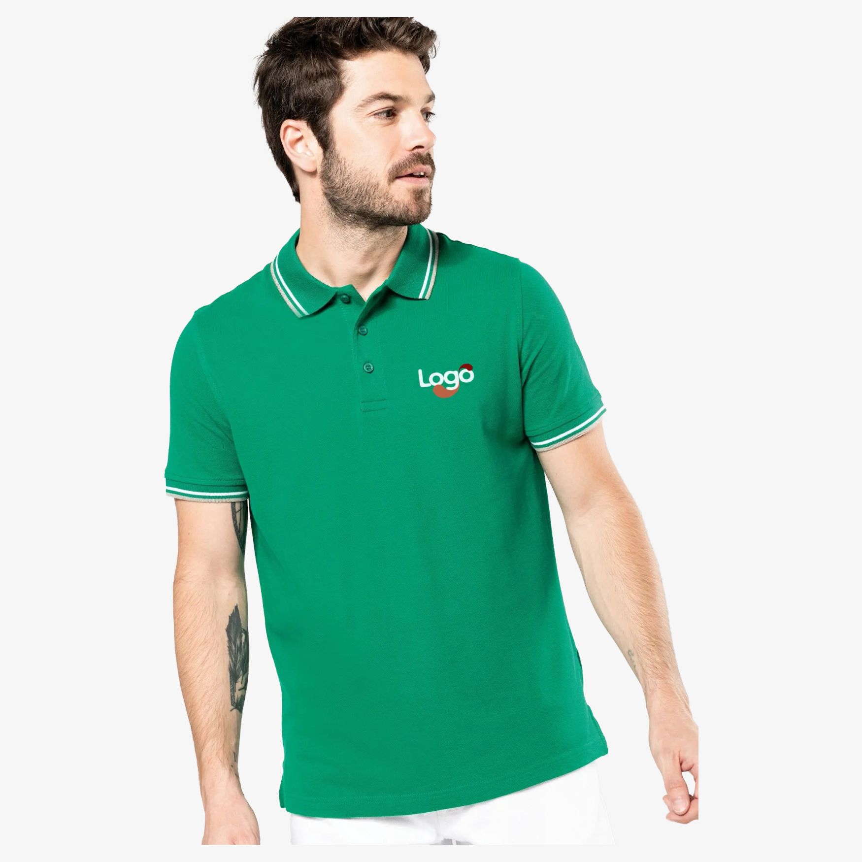 K250 - Men's short-sleeved piqué polo k250 customization with your logo - kelly_green/light_grey/white