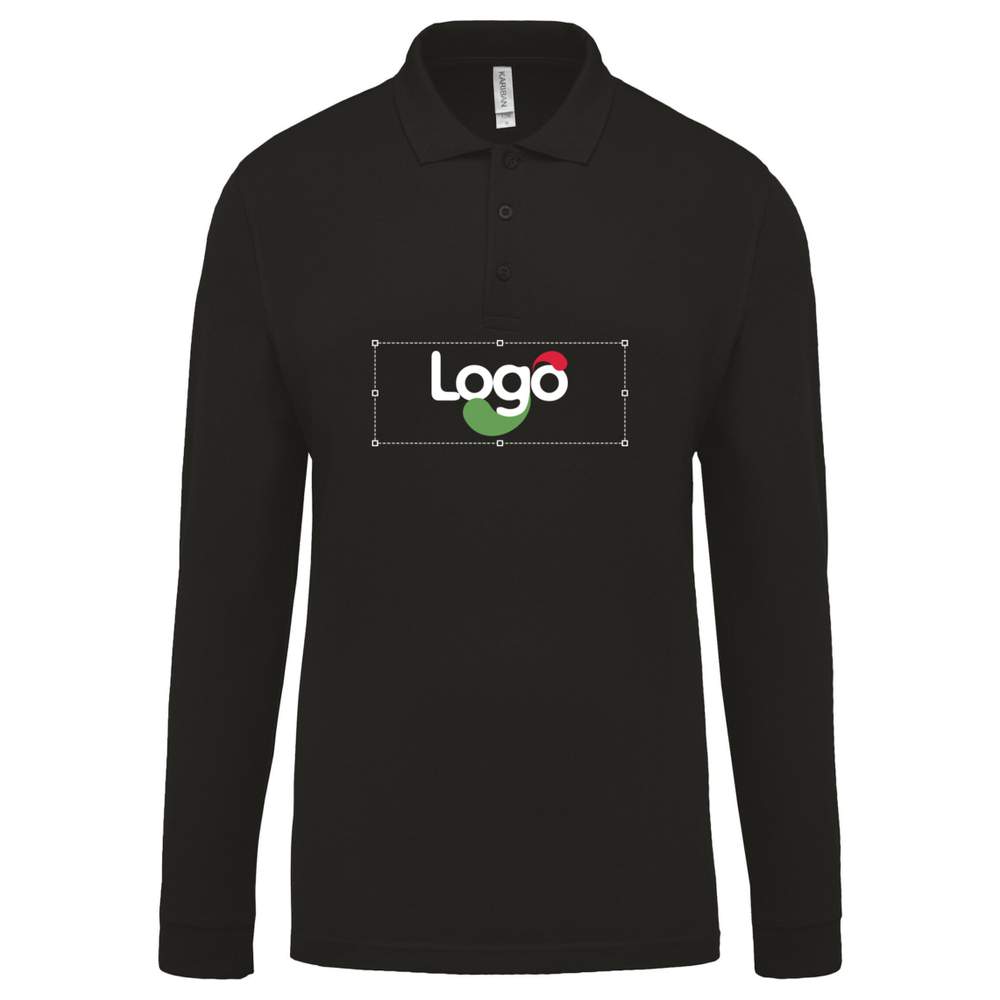 Long Sleeve Piqué Polo Shirt for Men k256 Customization with Your Logo - Black