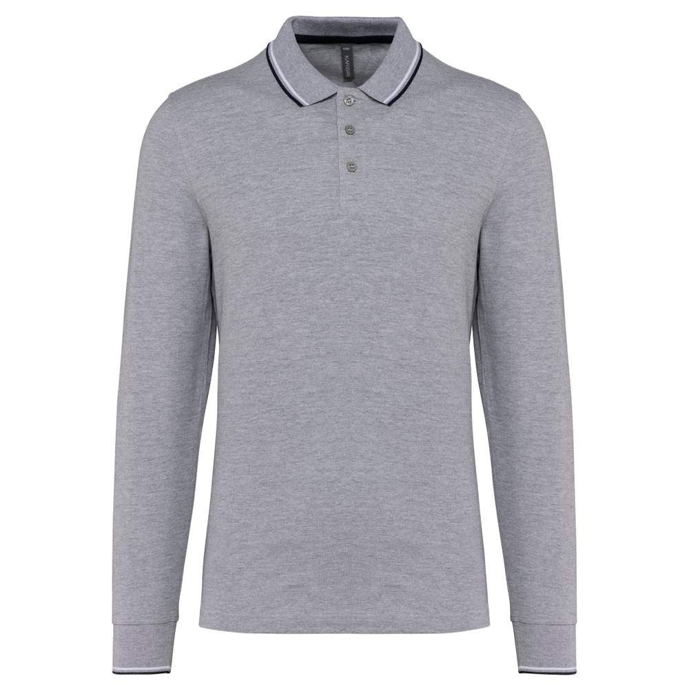 Long-sleeved piqué polo shirt for men k280 - Oxford grey navy white
