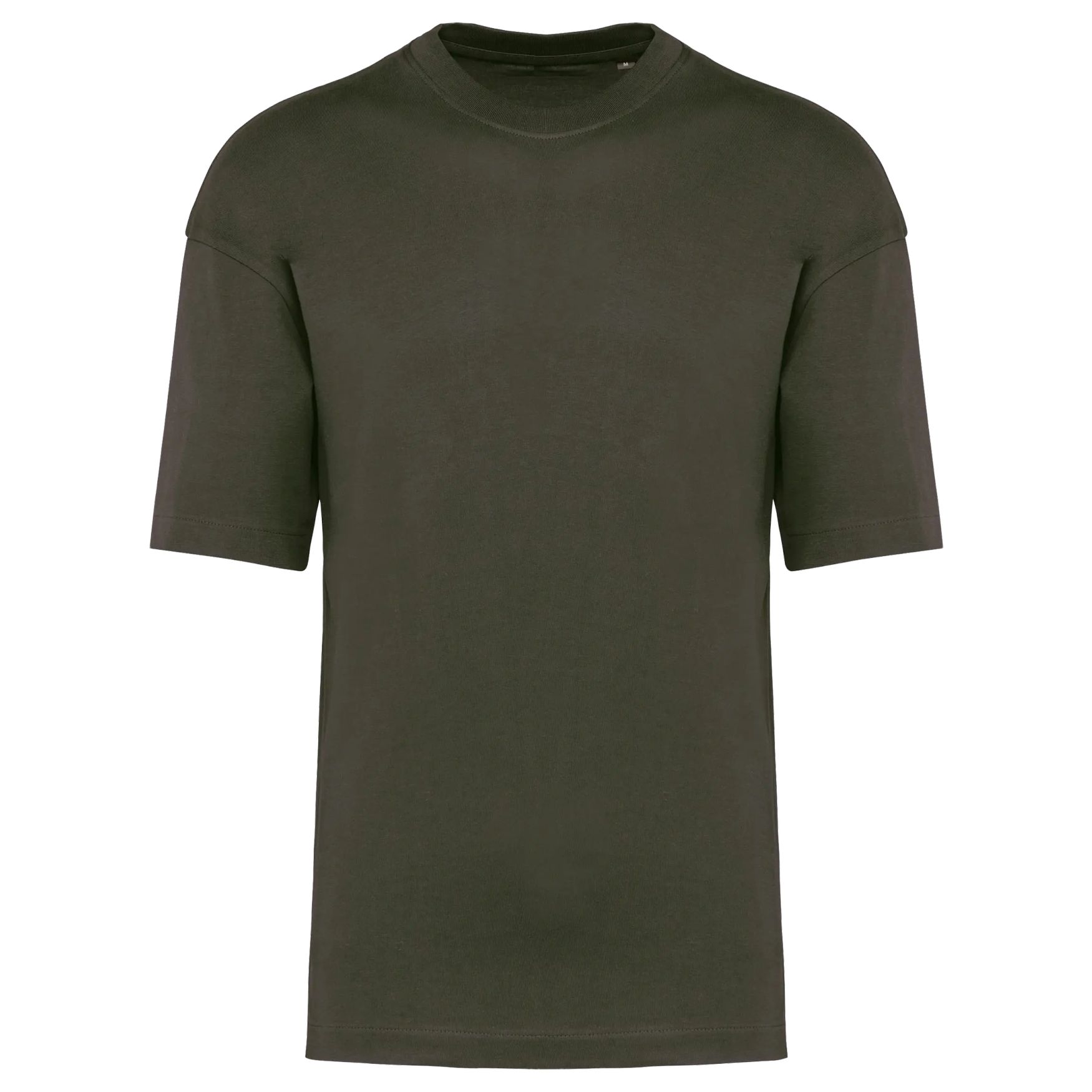 Unisex oversized short-sleeve t-shirt. Made of cotton carded, this tee offers optimal comfort and a modern fit with dropped shoulders. Its oversized cut and careful construction make it a versatile garment for everyday use. Silicone reinforcements on the shoulders for better hold. Round neckline in rib 1x1 same color with simple overlock stitching. Same color clean band. Simple overlock finish on sleeves and bottom of garment. No brand label at the collar, only a size chip for easy customization.
