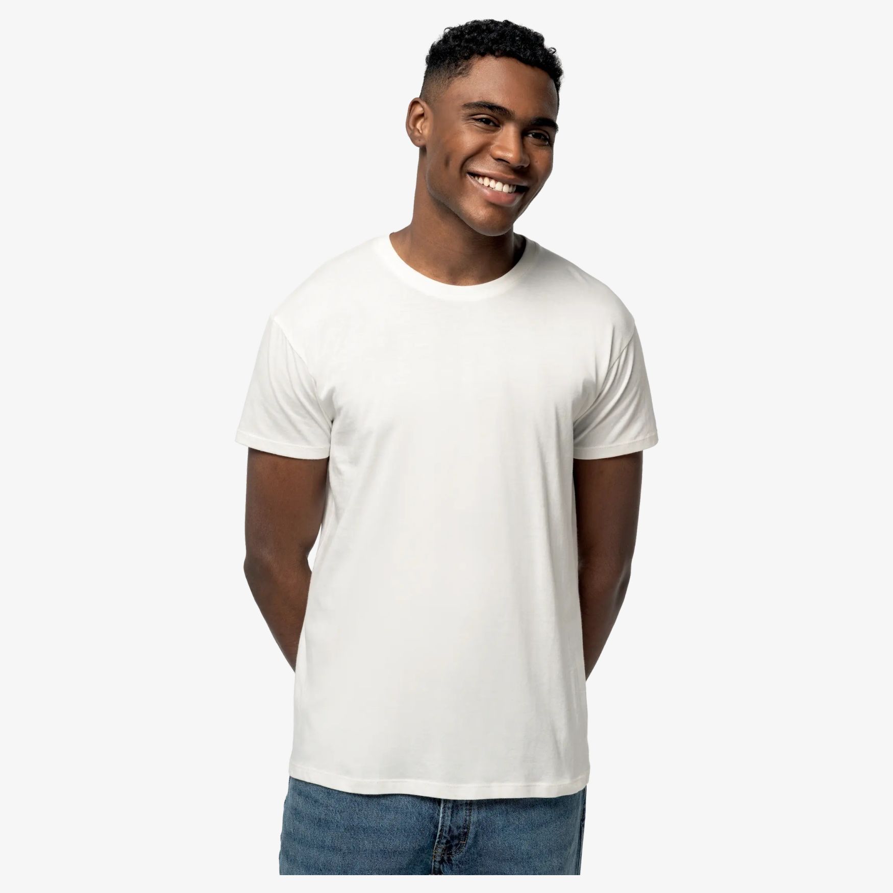 Men's bio t-shirt. Round neck with rib and elastane. Matching color neck tape. Tubular cut. Double-needle bottom of sleeves and bottom of garment. Certified STANDARD 100 by OEKO-TEX® N° CQ1007/7, IFTH.