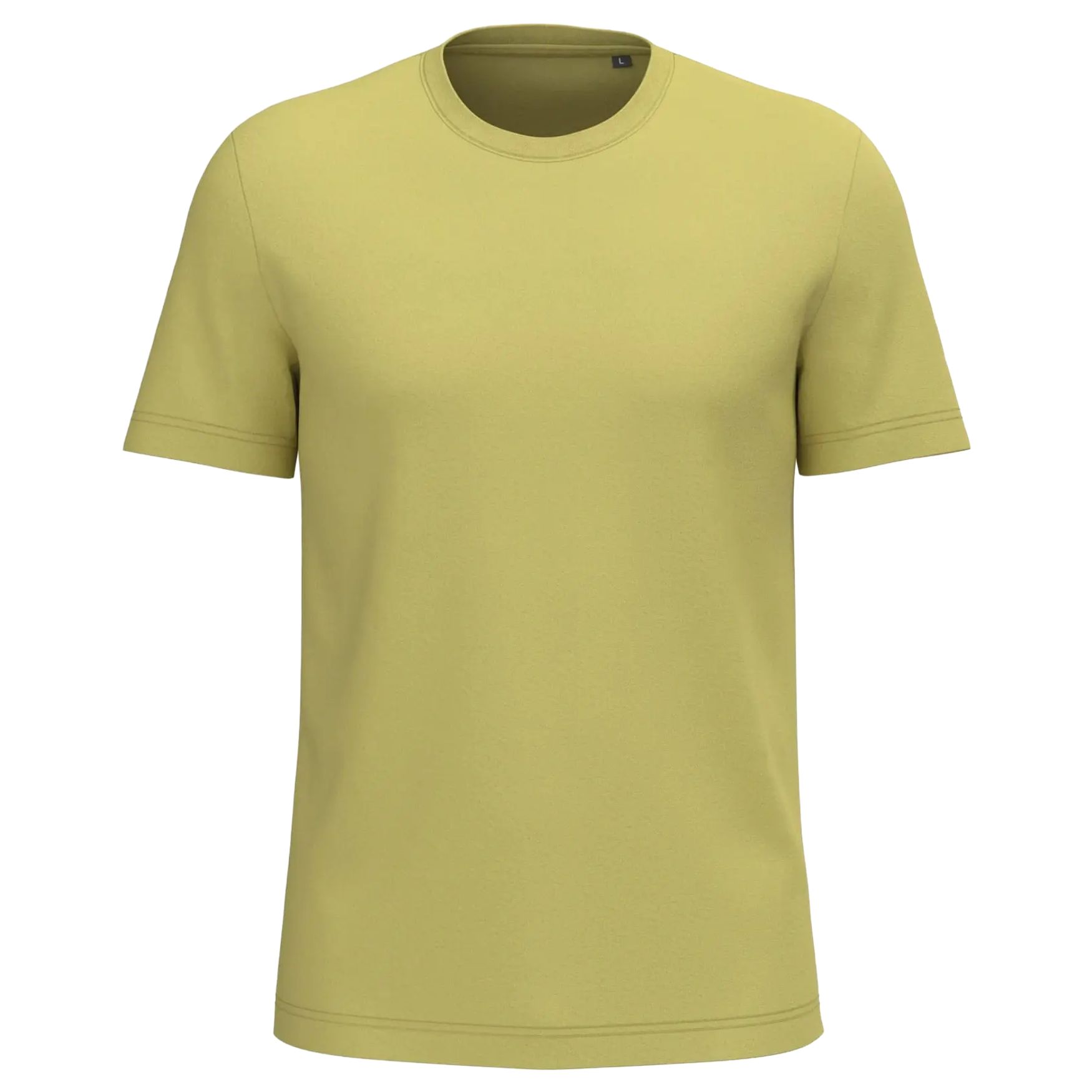 Men's bio t-shirt. Round neck with rib and elastane. Matching color neck tape. Tubular cut. Double-needle bottom of sleeves and bottom of garment. Certified STANDARD 100 by OEKO-TEX® N° CQ1007/7, IFTH.