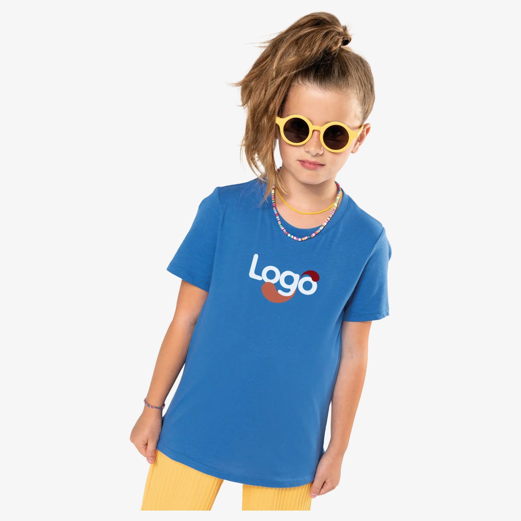 Bio t-shirt for children, cut and sewn. Round neckline with ribbed edge and elastane. Matching color neckband. Double needle hem at sleeve ends and bottom of garment. This t-shirt is designed to be customized, offering an ideal surface for adding your logo, visual or message. Composition solid colors: 100% cotton in organic conversion. Ash Heather color: 98% cotton in organic conversion, 2% viscose. Oxford Grey color: 90% cotton in organic conversion, 10% viscose.