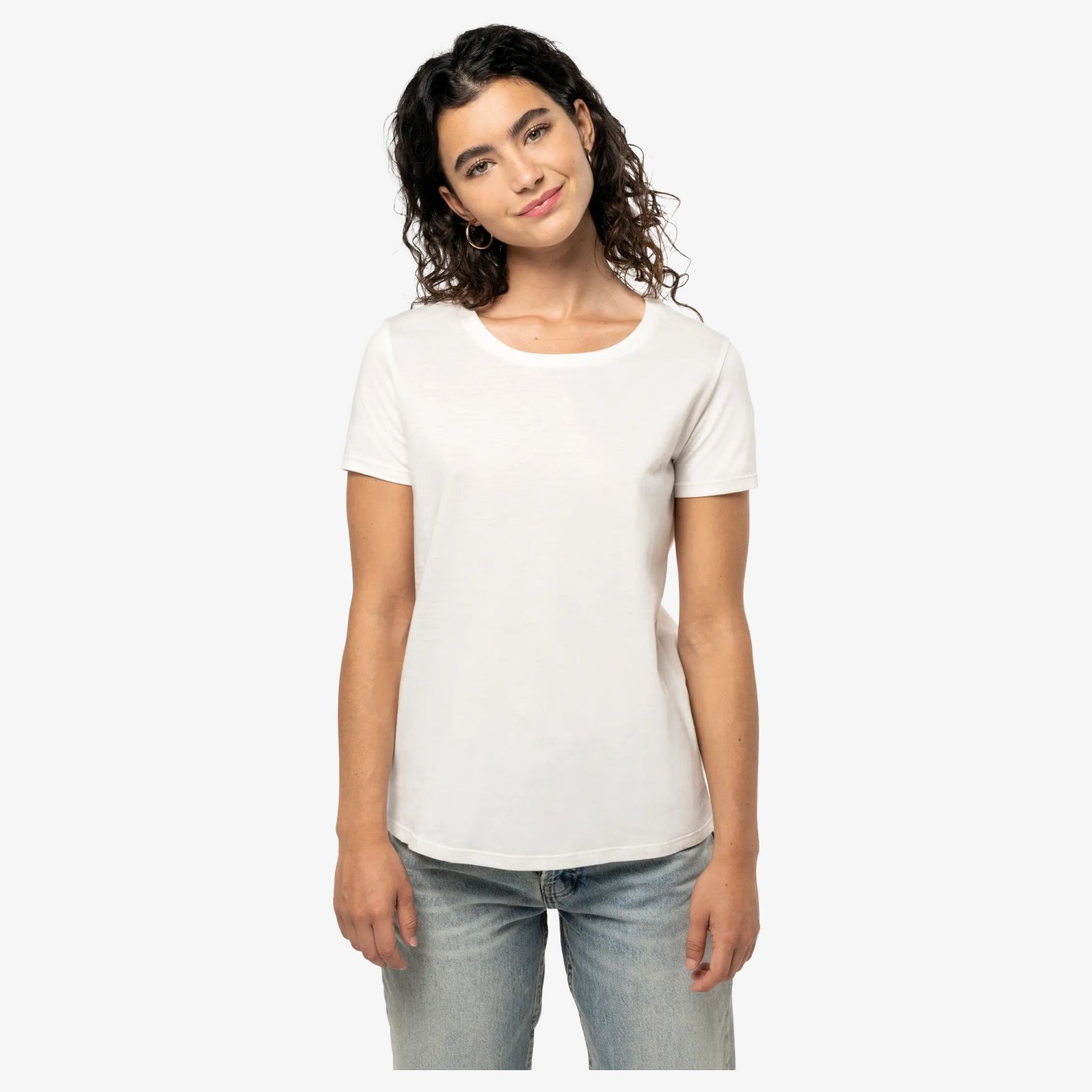 The T Shirt Bio190 ic Femme women's tee-shirt in in-conversion organic cotton, with a fitted cut and 1x1 ribbed collar. Combed cotton, cut and sewn, topstitched finishes, and a tone-on-tone neck tape inside the collar. Composition: 100% cotton, except Oxford Grey: 90% cotton, 10% viscose.